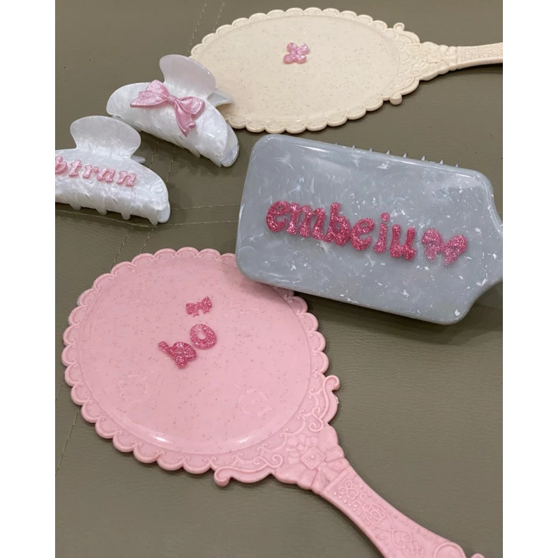 Gương resin, gương clay, gương mix charm – vừa dùng để soi, vừa decor góc bàn cực đẹp.